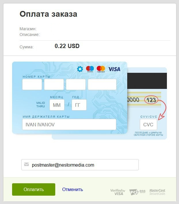 - Оплата: Банковские карты Visa/MasterCard через Assist