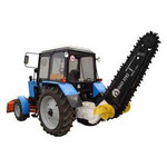 Экскаватор траншейный цепной ЭТЦ-201 на базе 130-ти сильного колесного трактора "Беларусь" МТЗ-1221, предназначенная для рытья траншей прямоугольного профиля под кабельные линии связи, электропередач и трубопроводы различного назначения в грунтах I-III категории.
